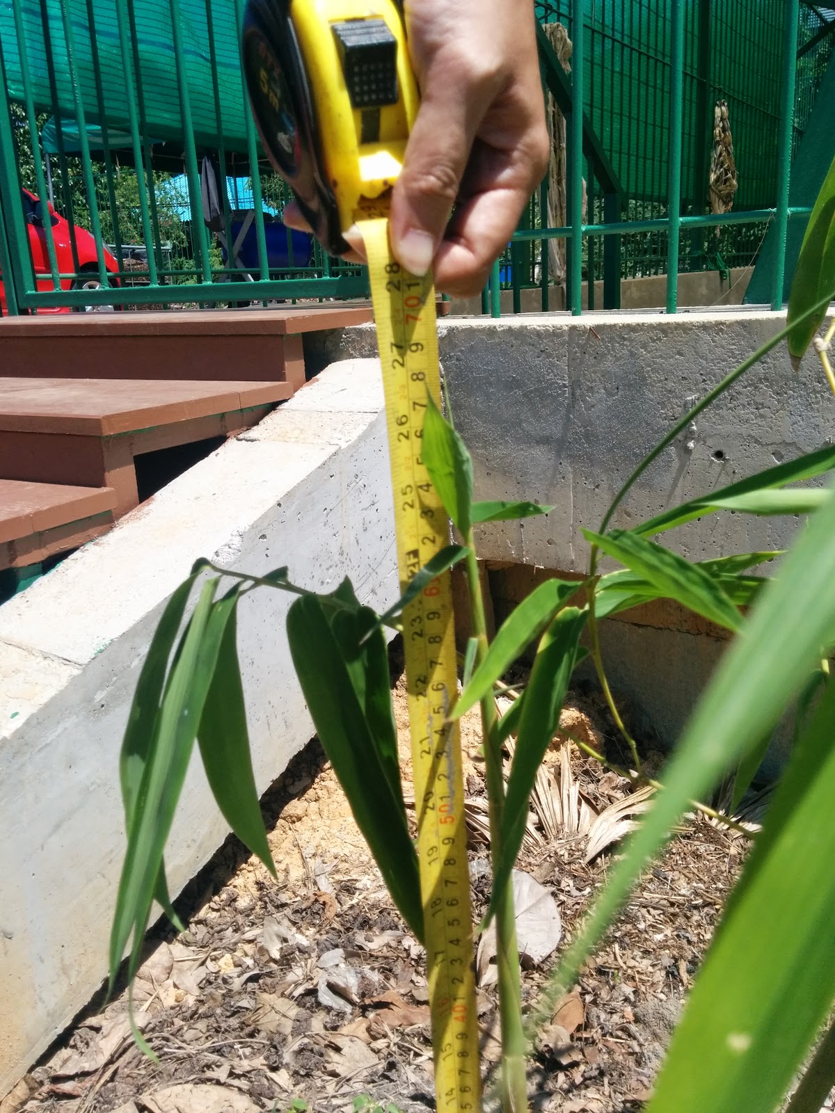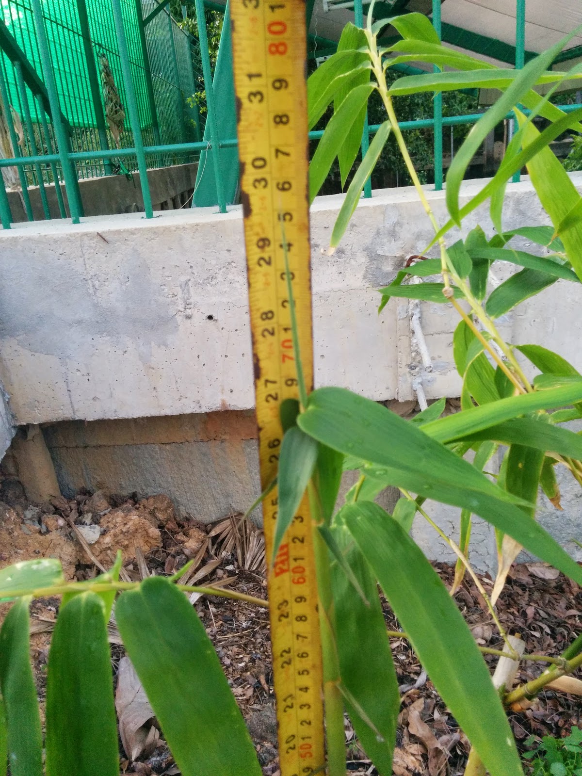 So… as mentioned in an earlier post, we planted 2 bamboo plants from Ayutthaya that we received from Praew’s family, and I waited for the first shoots to sprout up so I could start measuring them. And I saw the first shoot for the first time last Saturday. (I didn’t look on Friday, so I’m not exactly sure when it actually first appeared.) And boy, did it take off growing.