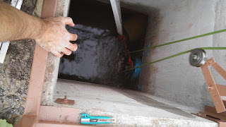 On the other side of the cement cistern is the 12″ PVC outlet which the impeller pushes the water out of. In this photo, if you look very closely, you can see the ripples showing the water motion: