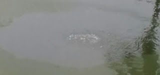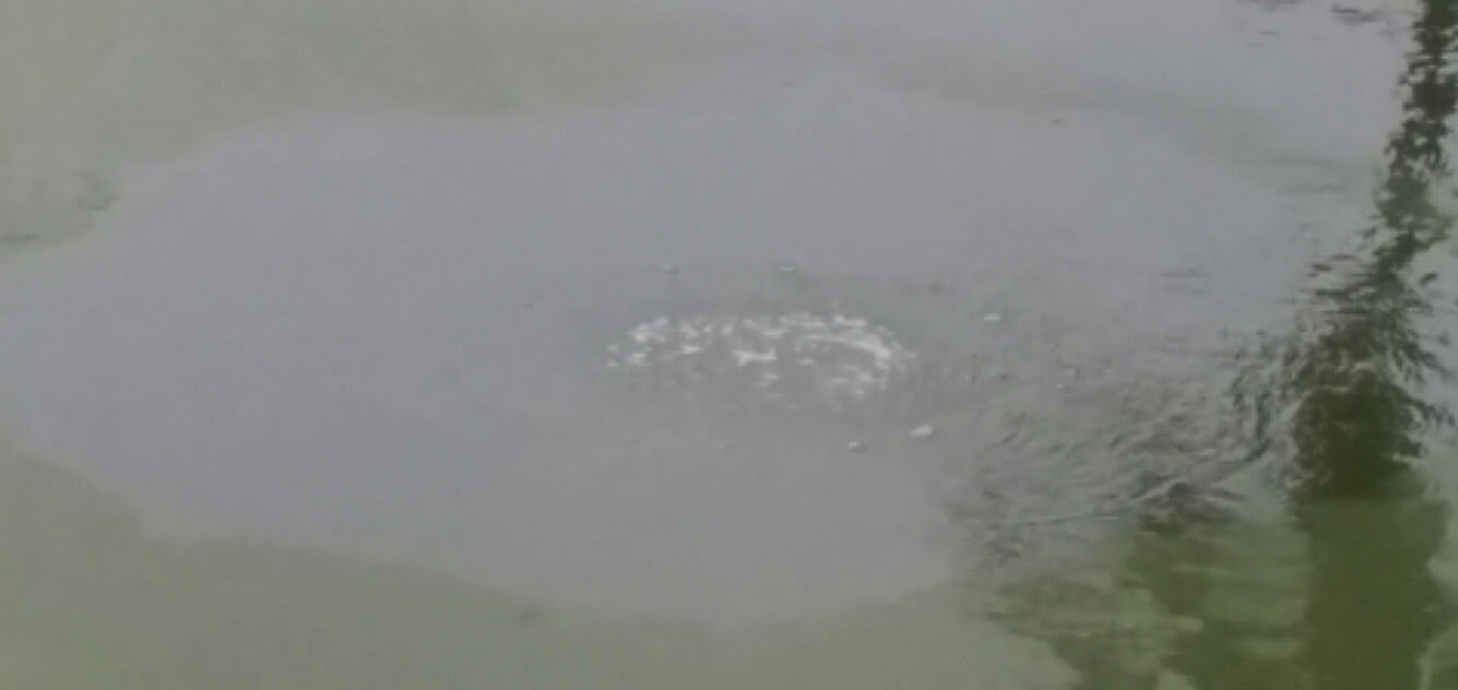 So the pump worked quite well in this prototype form, and with very little manual effort it was able to pump a substantial amount of air down into the pond. Here is a photo of the bubbles coming up: