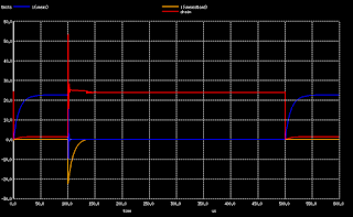 Here is the resulting plot of the simulation of this simple idealized model of the circuit using ngspice: