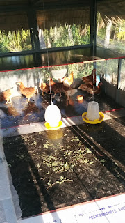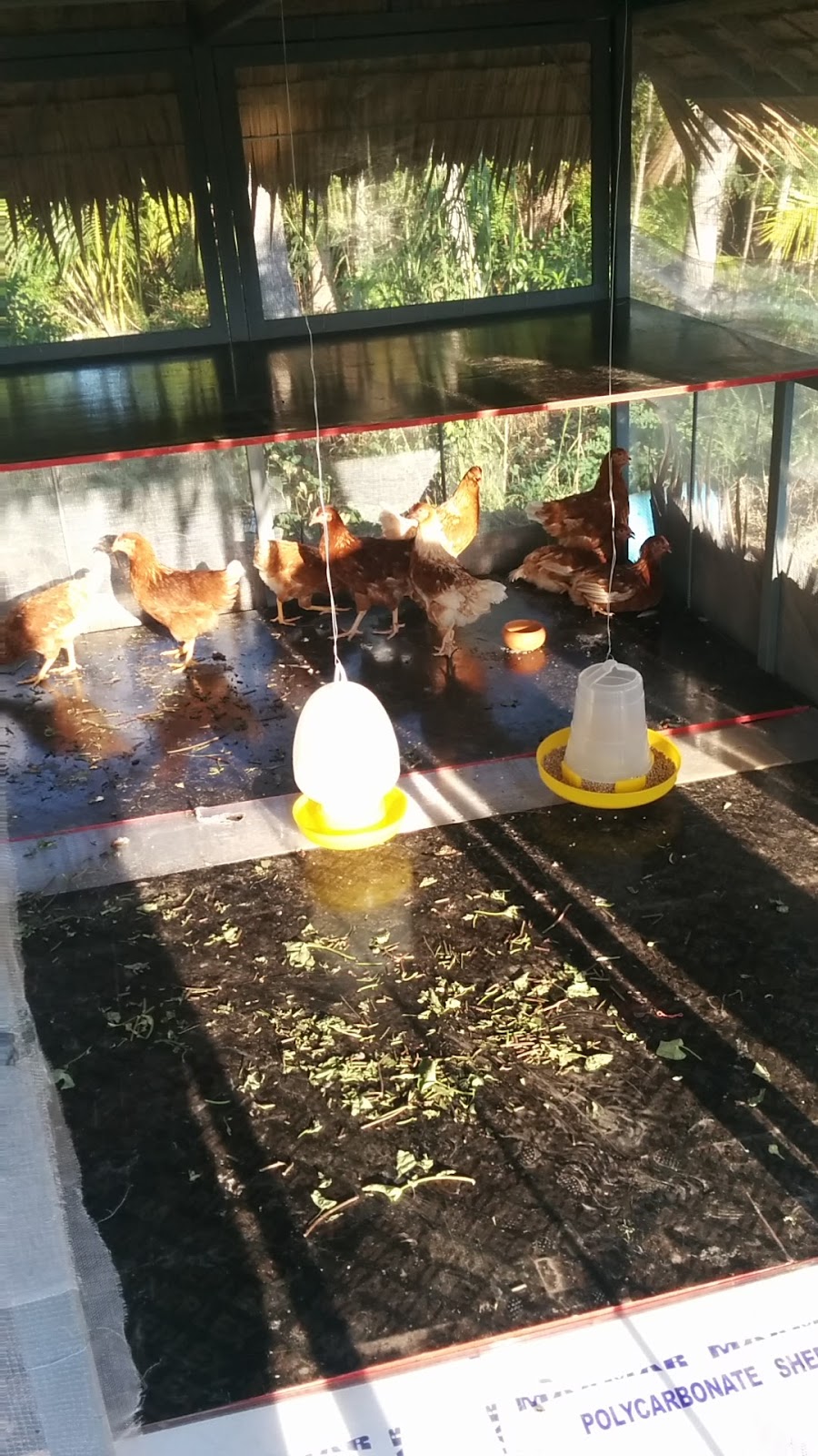 They appear pretty happy so far. We looked up the breed in a few places, and they are most likely a hybrid breed that the Thai government promotes. It is a hybrid of the “Rhode Island Red” and a local Thai breed of chicken.