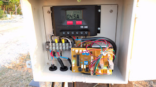 Here are some photos of the solar controller in operation towards the end of the day:
