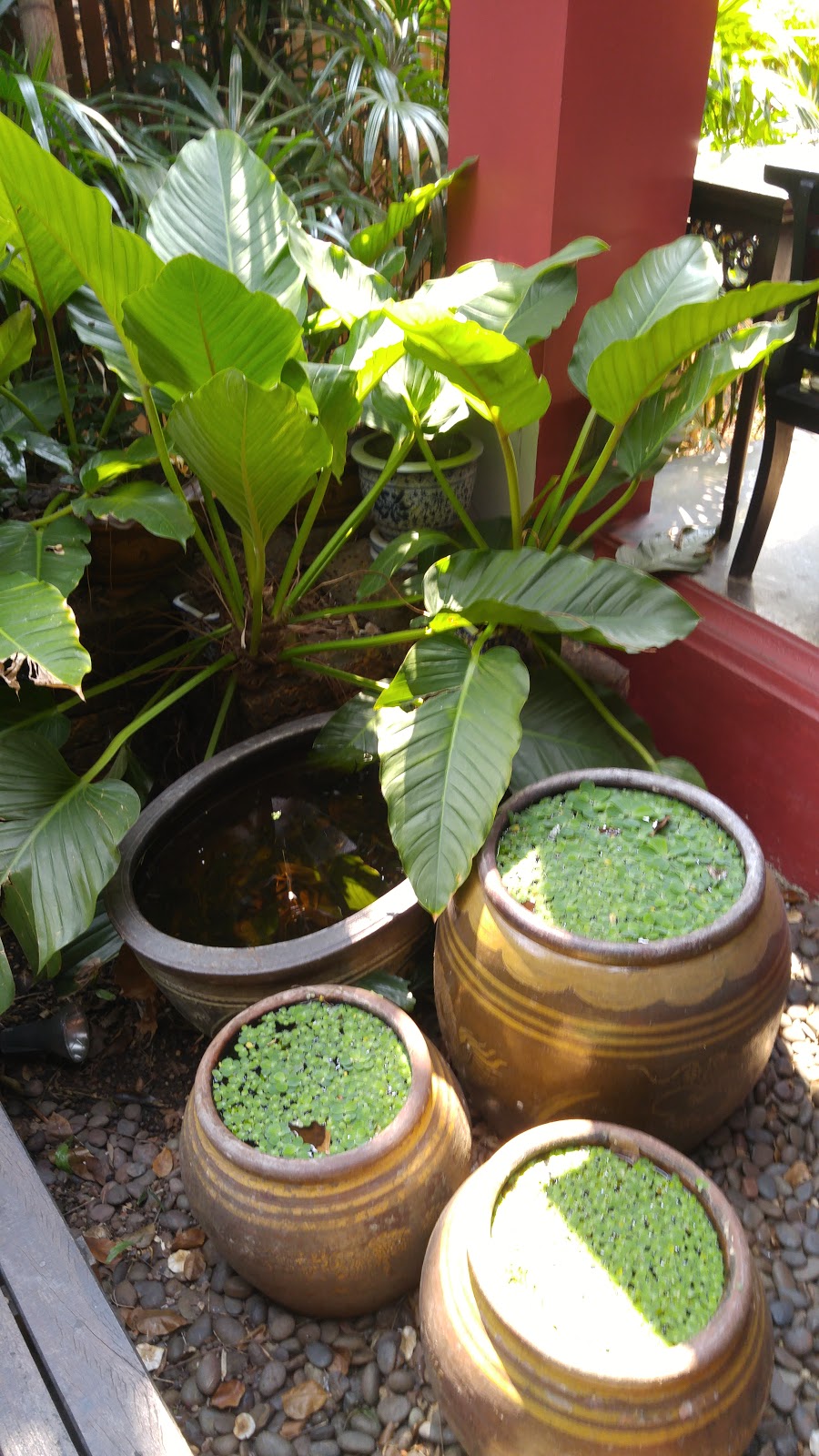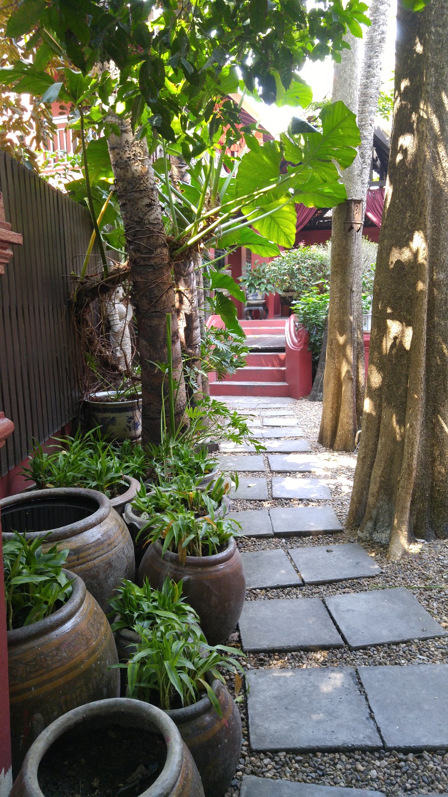 It is on a main road but it has a secluded feel with a cozy garden inside. Just the kind of place Praew and I look for.
