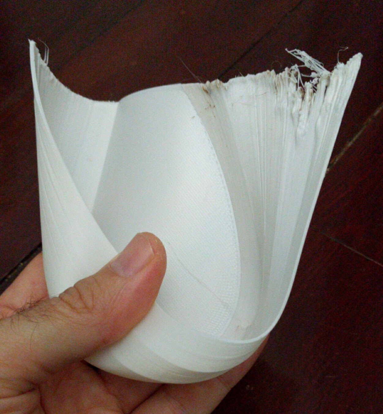 The part I printed last time was just a simple and very small 3cm cup. At 2mm thick walls, it was fairly stiff for its size. But this print shows that a larger thinner piece is much more flexible.