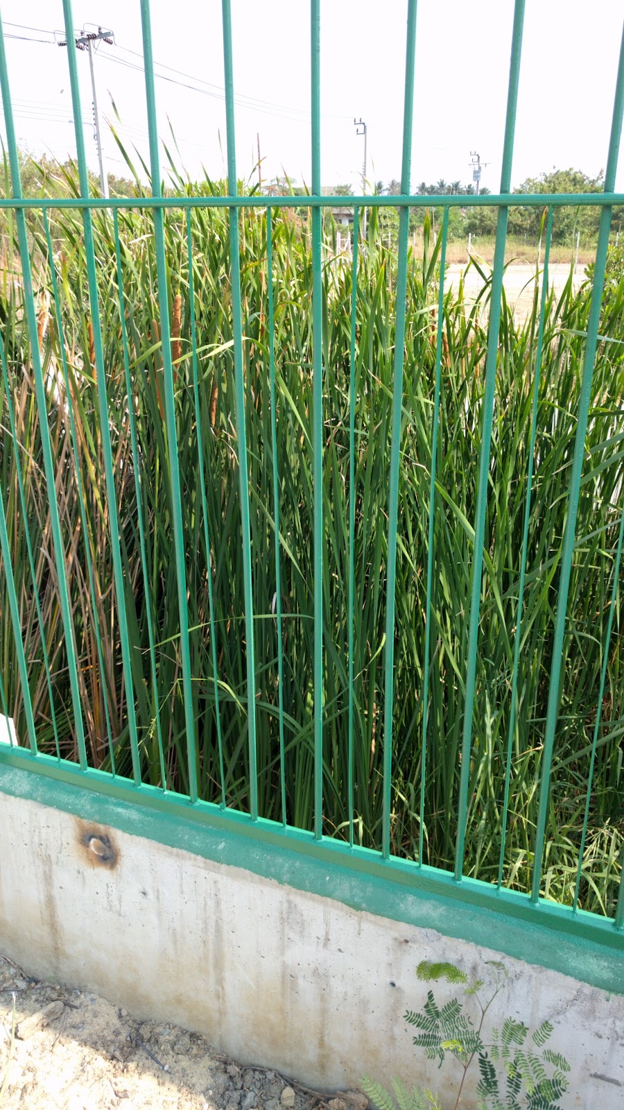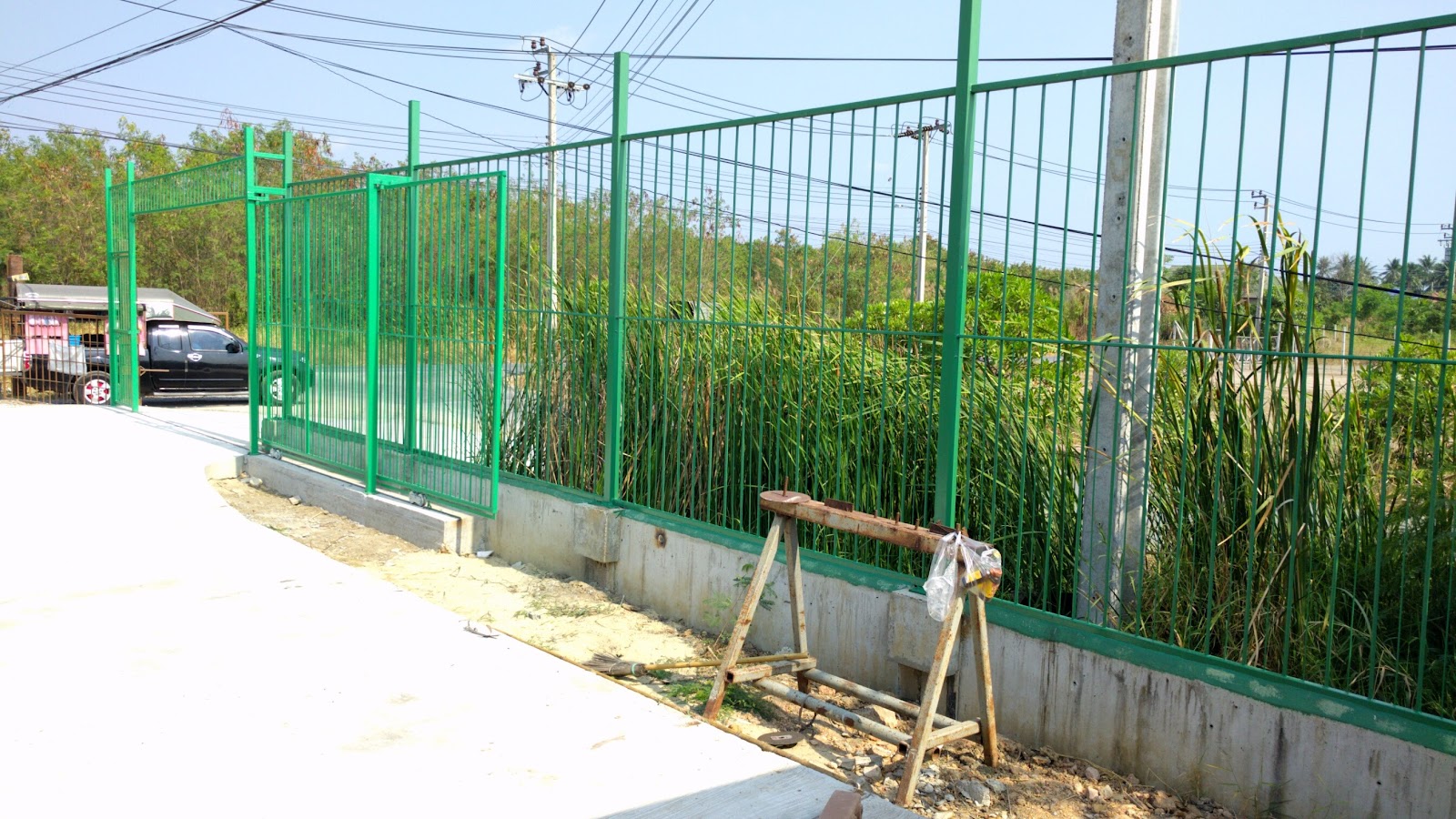 You have to look pretty hard to see the smaller rebar and it only covers the bottom half anyway. (Hopefully the dogs can’t jump 2 meters into the air and slip through the fence at the same time.) Here is a close-up: