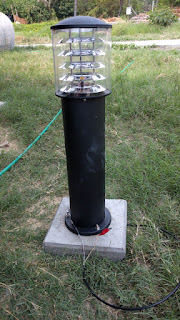 The workers welded a steel mold for the base of the walkway lights. Here is our prototype mounted up: