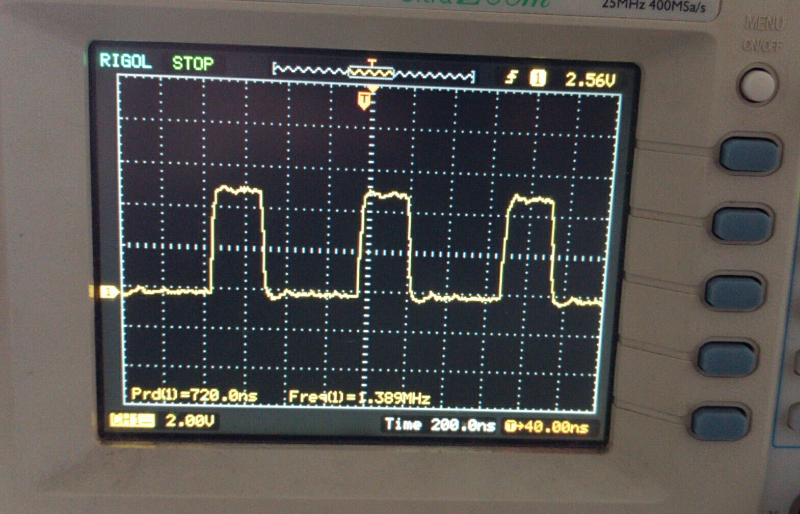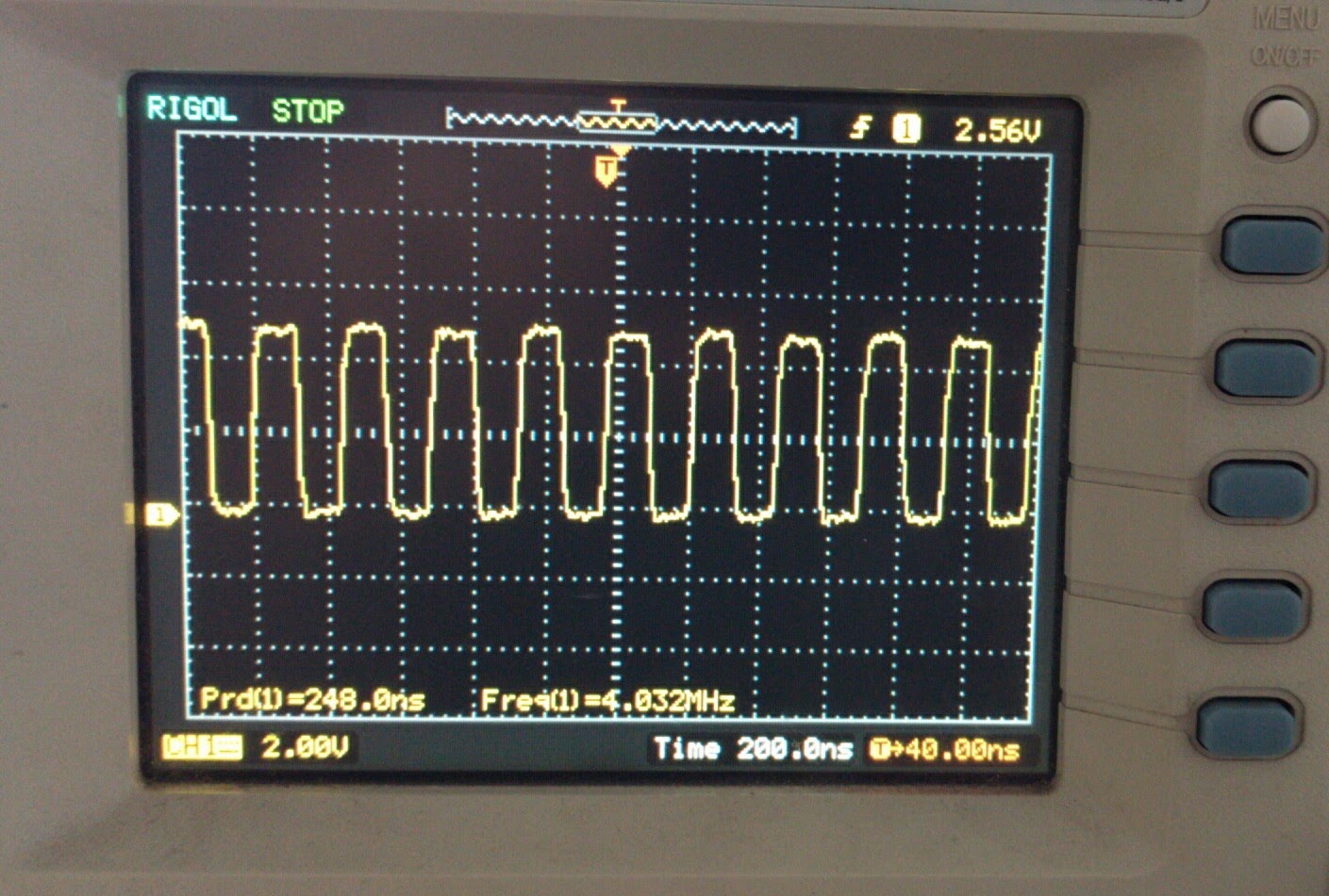 Here is a picture of the scope on this test running the above program: