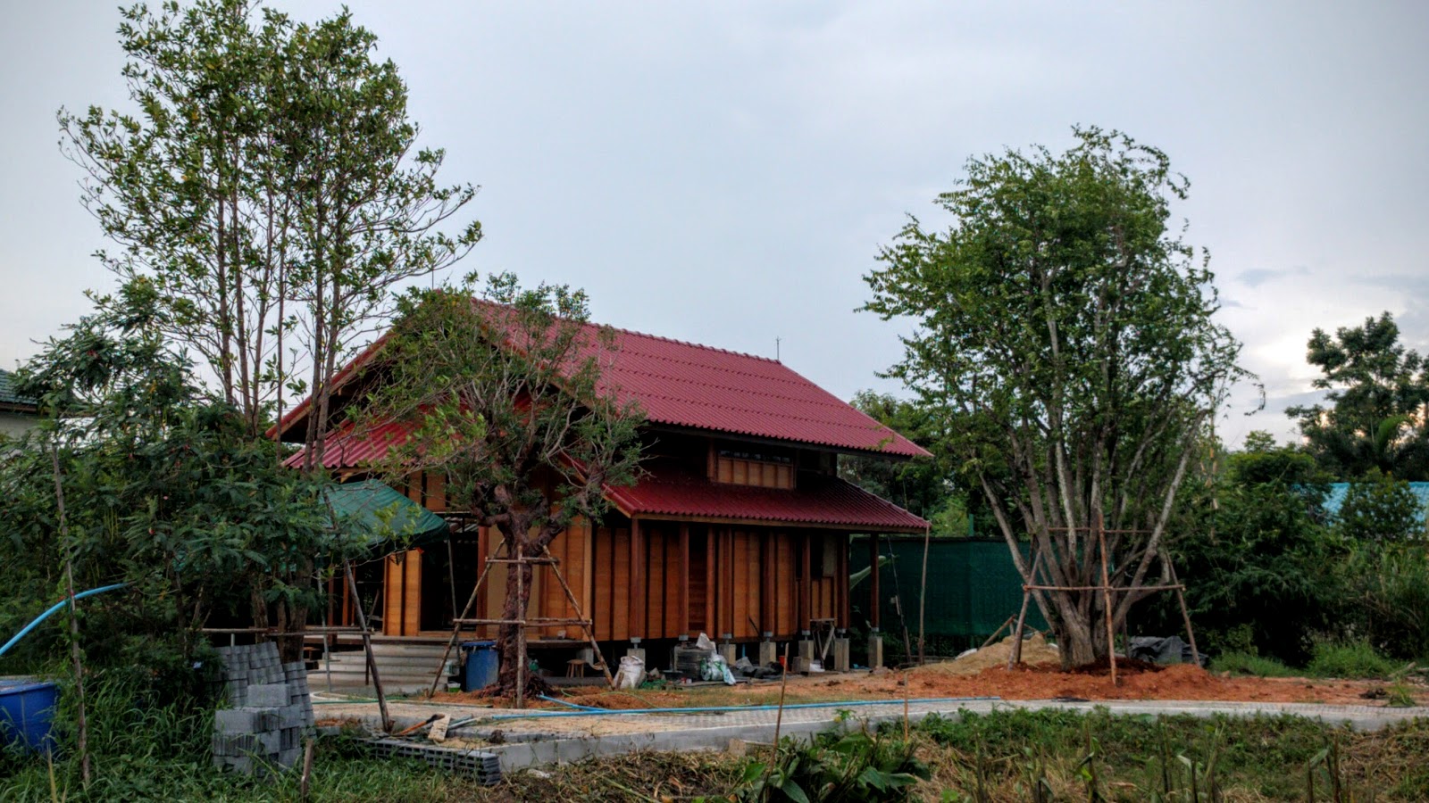 | This one tree on the eastern facing side of BaanMae will hopefully provide shade at sunrise after it grows out to keep the house cool in the morning |
