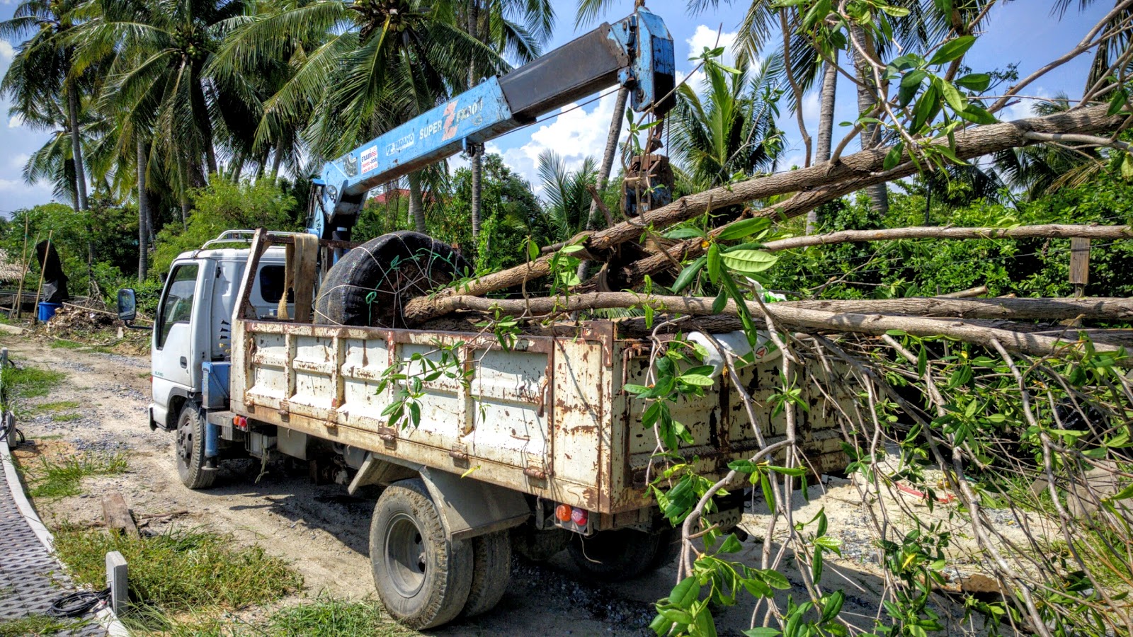 Praew took the lead here and scoped out the various plant shops around the ring road and chose one. She ordered 14 trees, almost all of them larger than the 2 houses we’ve built so far.