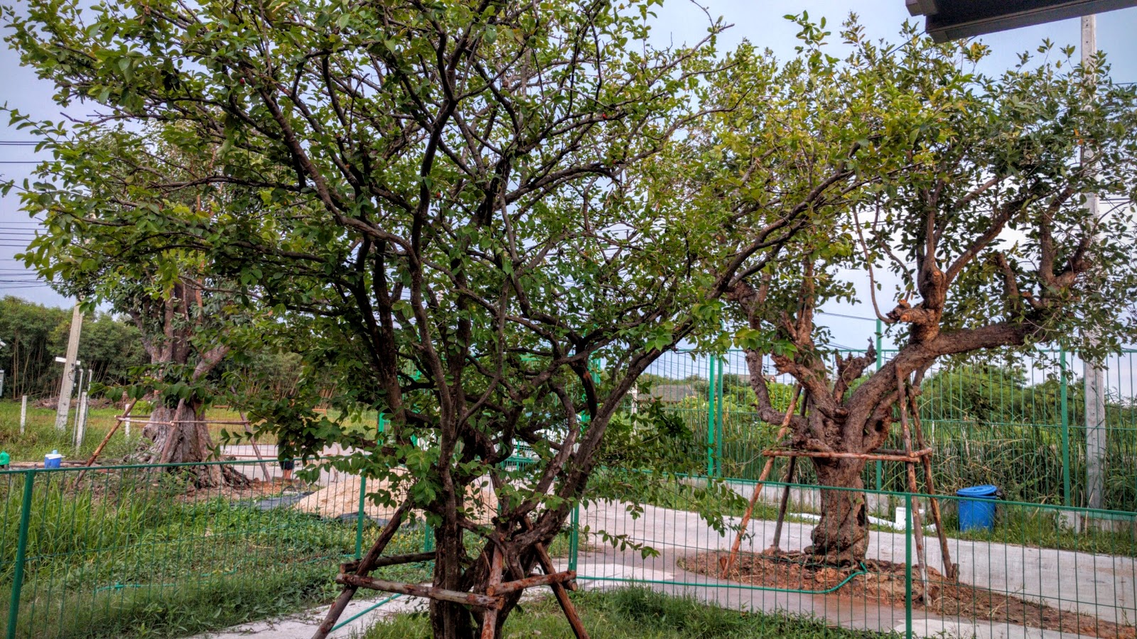 | Three trees planted by BaanRimNaam. The “thon makkleua” on the right, the smaller “thon sammet” in the middle, and the “thon kankraow” on the left |