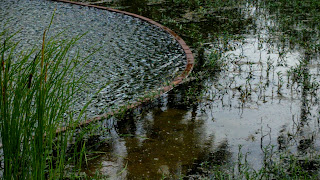I noticed that the water level in the pond reached the top of the sand filter retaining wall (just barely) for the first time last weekend. Here are a few photos:
