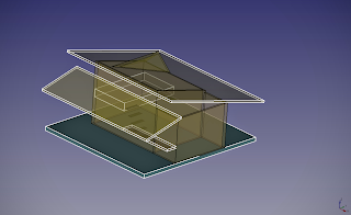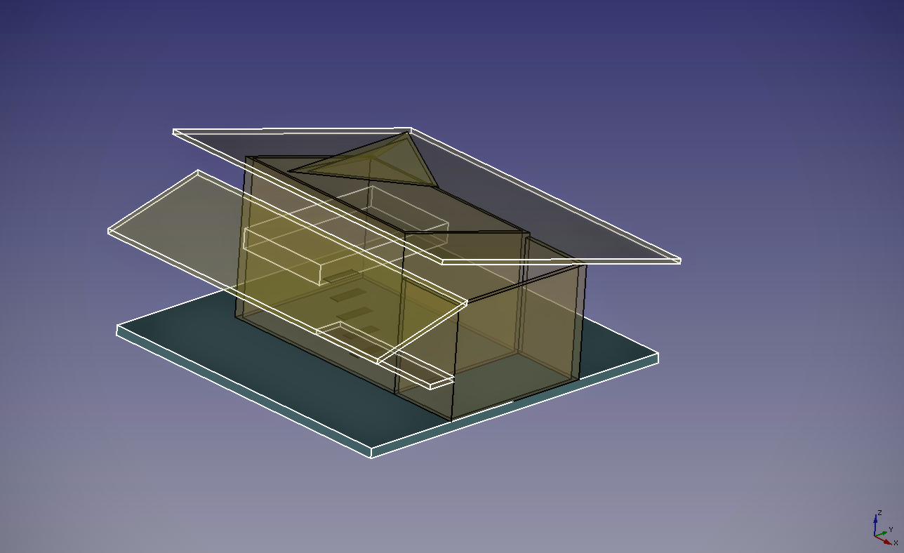 While I sat with the workers to work out the size needed and the rough layout of how they want to store the tools, I let them design the structure themselves. Coincidentally, at the same time, Praew and I have been refining and downsizing the floating house we intend to build (BaanLoiNaam). And even more coincidentally, both the size of BaanLoiNaam and the basic style are quite close to the toolshed they are building. Here is our CAD mockup of BaanLoiNaam at this point: