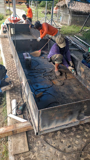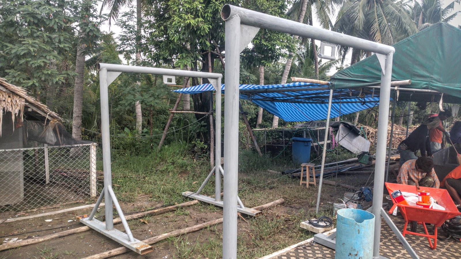 When the time comes to lift up the ~800kg pontoons to check the underside welds and then paint the underside, these frames will be placed over both ends of the pontoon so that we can mount the hoists.