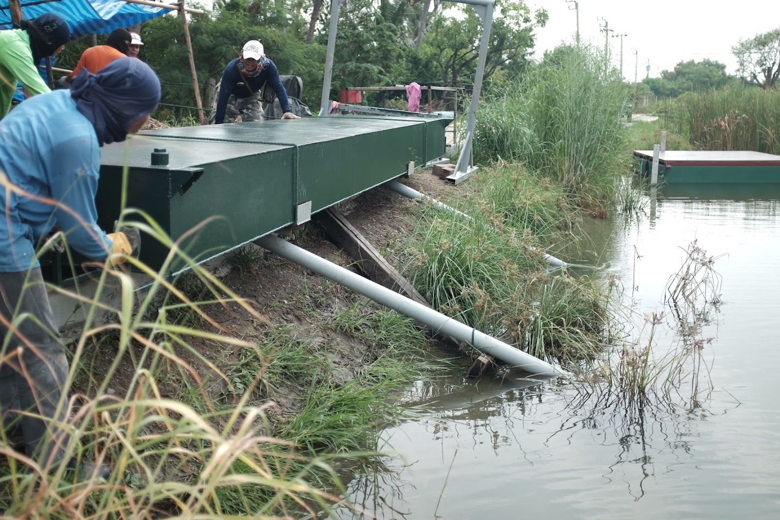 I was out of town, but I received these photos of the launch of the second pontoon: