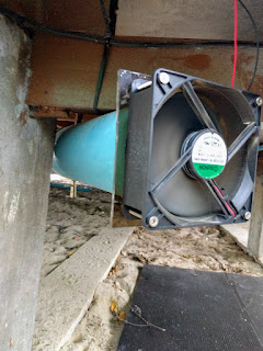 Nonetheless, we eventually hooked up a 12V DC exhaust fan under the house: