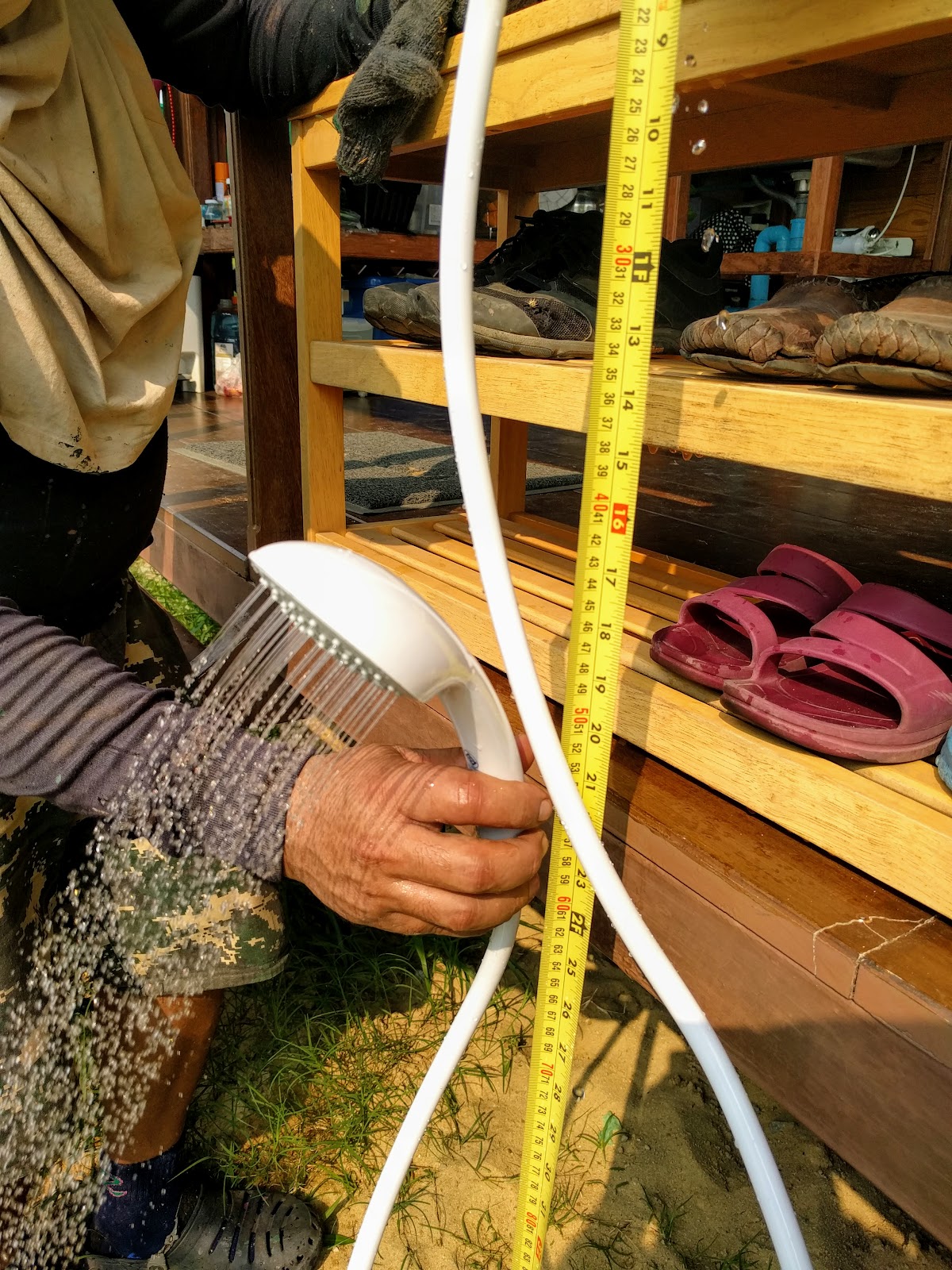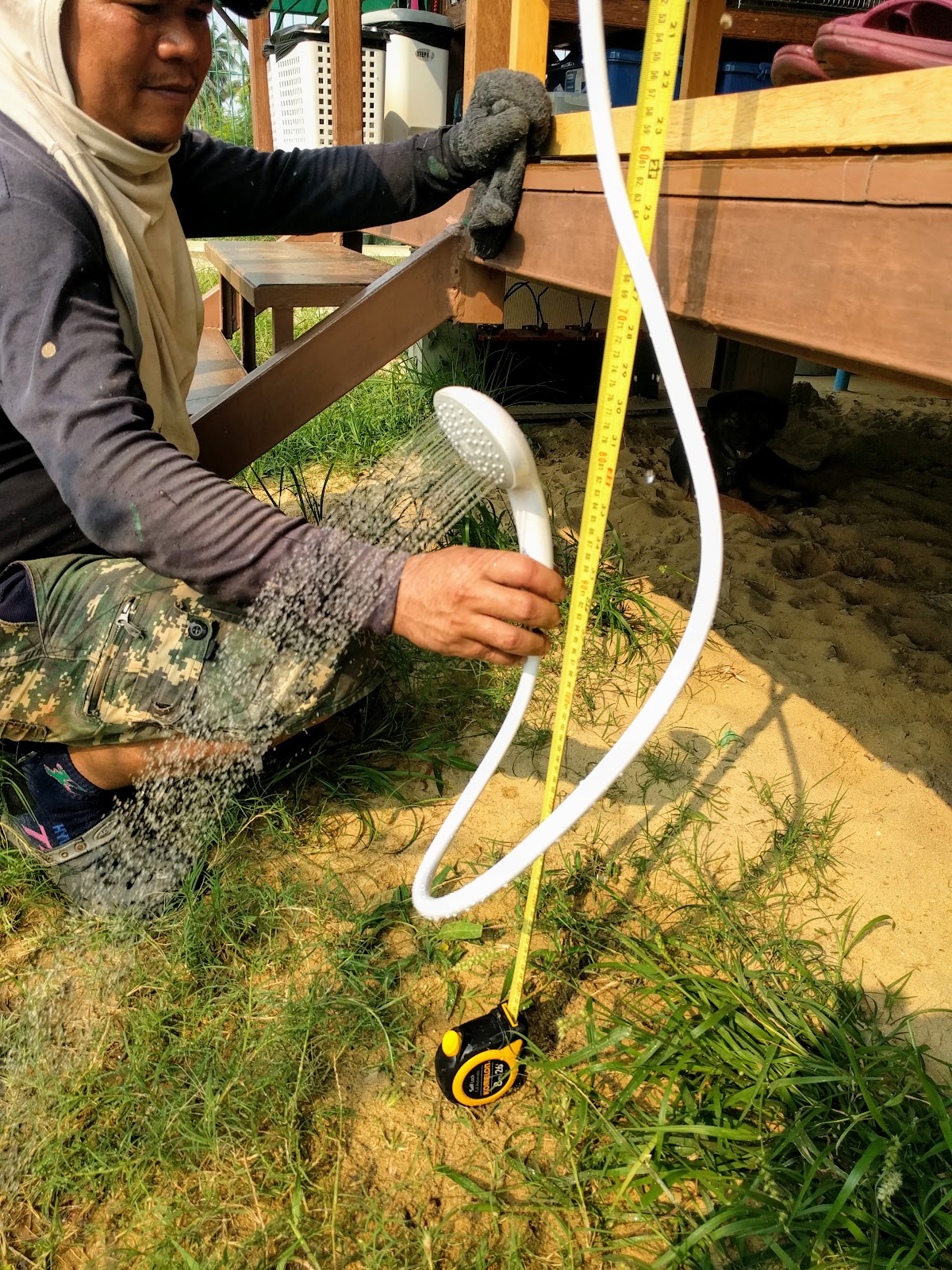 As an aside: the cheap shower head cost 100THB which comes out to less than $3! I haven’t shopped for home improvement items in the USA for many many years, but my guess is that the supply of cheap Chinese manufactured items such as this get on the shelves at a lower price here than in the US. Is it more efficient supply routes from China to Thailand (which I doubt), value pricing in the US, would these products in Thailand not pass US quality requirements, or have prices in the US come down quite a bit since I last looked? I’d be curious to find out.