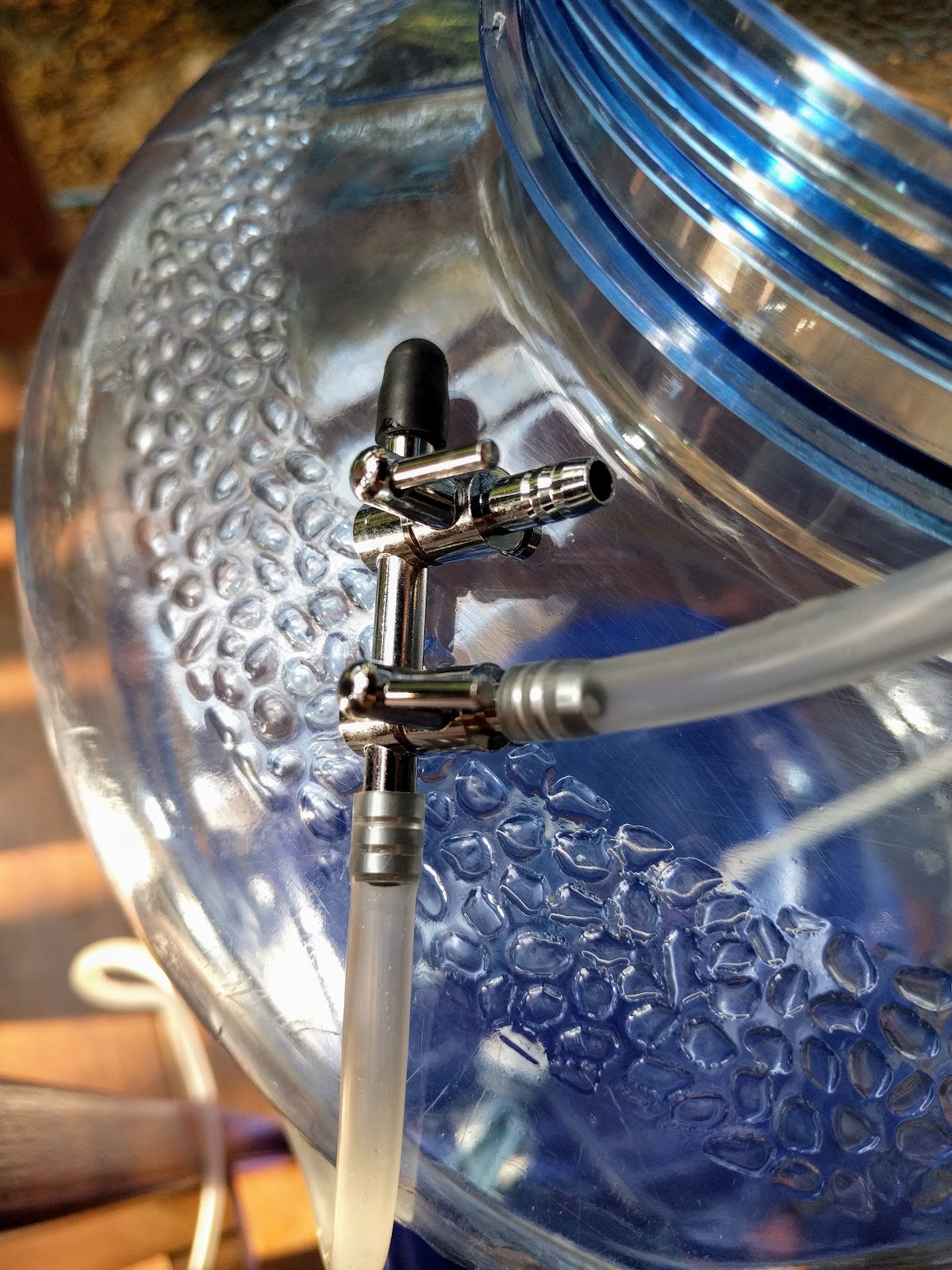 I ran the tube up to a bivalve so I can switch the air between the diffuser and the glass tube: