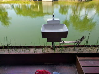 You can see the cattails planted in the box beneath it. These will hopefully grow up to make a “green wall”.