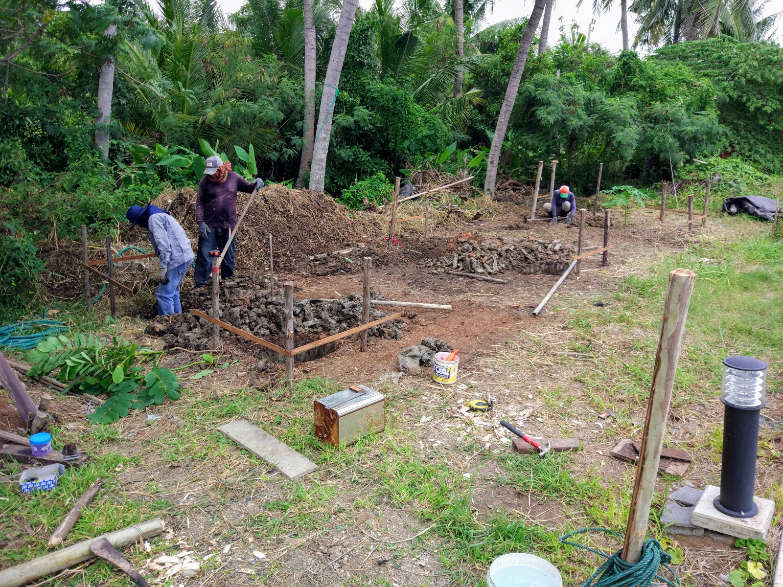 The idea is to have a roofed set of six separate composting areas. Each one will be wider, longer, and taller than the three composting cages we have now that are overflowing.
