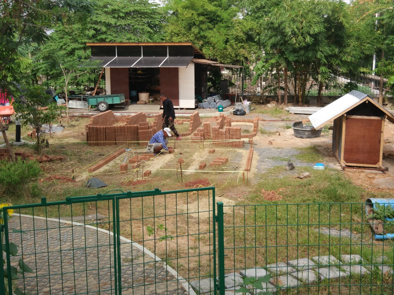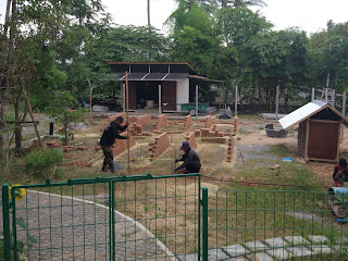 One last comment that I will be posting more about later is that you will notice above that the gardens are all rounded on the ends. This was done for a very specific reason. Praew is working with some of her students on designing a mobile robot for gardening. The guys at farmbot.io have done some pretty cool things with a CNC based gardening robot. Praew’s thought is that while their design is pretty cool. it doesn’t scale well because it would require bigger and bigger gantries and longer and longer rails for the gantry to move on if you want to enlarge your garden. So Praew’s design is to build a mobile robot that lives on the top of the bricks at the edge of the garden, and runs along it like a monorail. It can have a charging station at one point on the edge, and can run around the entire garden on its own doing what needs to be done. Watering, weeding, planting, and maybe someday even harvesting. No wires, no rails, no moving gantry. Just a mobile robot that crawls around the wall of the garden with an arm long enough to reach halfway across the width of the garden.