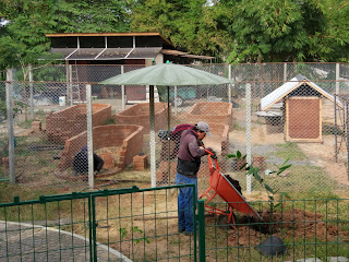 Now, Praew has signed up for a class on organic chicken farming at Organic Way nearby. At the class, they give each participant 5 organic chickens to take home, and we now have a home waiting for them. It will be good to have someone to ask about cleaner ways of raising chickens without falling for all of the sales pitches out there for whatever supplements or vaccines the large companies are trying to sell everyone. 🙂