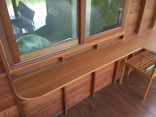 So here is a nifty folding counter top in the kitchen of BaanLoiNaam (floating house) that does exactly that: