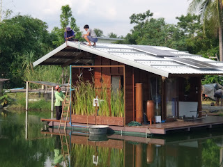 Having added lightning rods to both of our non-floating houses on our land along with the appropriate binding and grounding, I have struggled to figure out how to similarly protect BaanLoiNaam, our floating house. This isn’t just an academic issue. One of our neighbors had their house burn down this year due to a lightning strike during one of the most violent electrical storms I’ve ever experienced. And since our floating house is the only thing sticking up in a nice perfectly flat pond, it would seem to be a natural target for lightning.