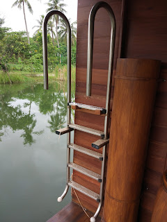 Most of the time, I won’t be using the ladder to climb down from the balcony of BaanLoiNaam (the floating house) into the pond. And when it is just sitting in the water, over time it seems to get pretty dirty.