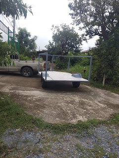We ordered the trailer chassis from a shop at Sa-gae-ngarm Rd. to build the MuH (micro mobile house) main structure. They delivered it in about a month.