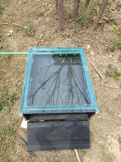 We placed the solar still on the pontoon, face slope side to the west. Output water will go through the pipe and fill in the clear tank.