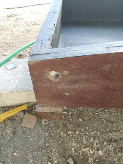 We drilled a hole in the side to insert the pipe through. then we screwed the wood to support PPR pipe. The pipe needs to slope down to make sure that water will not get stuck inside.